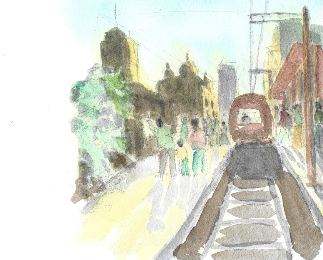 Train lines, sky lines, foot lines form story lines of many people’s life lines