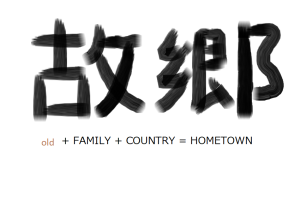In Japanese, Furusato is made of Kanji pictograms for old + family related + country/region related = hometown.