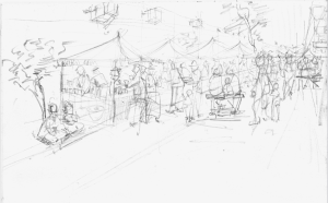 夜市 (yoichi). It’s also written as 夜の市場 (yoro ichiba) or 夜のマーケット (yoro marketto)