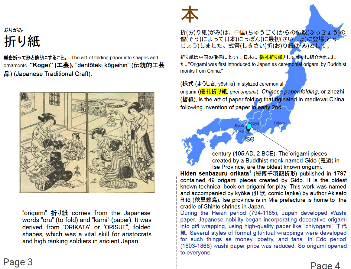 This entry level booklet is simply scratching the surface of deep origami history and its vast applications. The translation is in progress to make it readable to entry level learners and whoever is interested in Japanese Traditional Art “dentōteki kōgeihin” (伝統的工芸品).